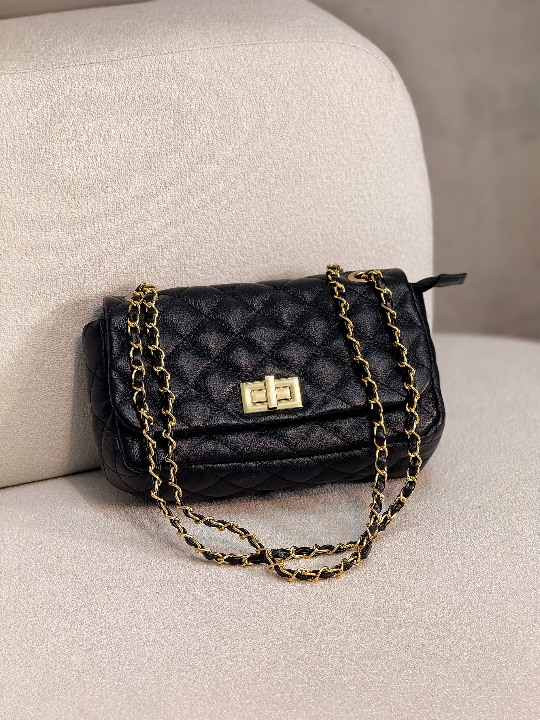 Bolsa Feminina Dubai M em Preta Couro Legítimo
