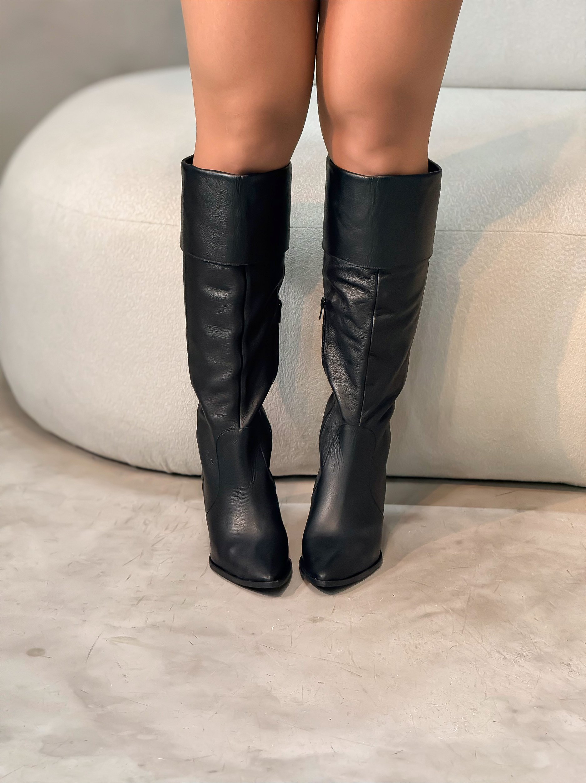 Nossa bota é 100% couro, traz o estilo montaria, com lapela dobrada fixa, super estilosa. Toda forrada por dentro, super confortável!