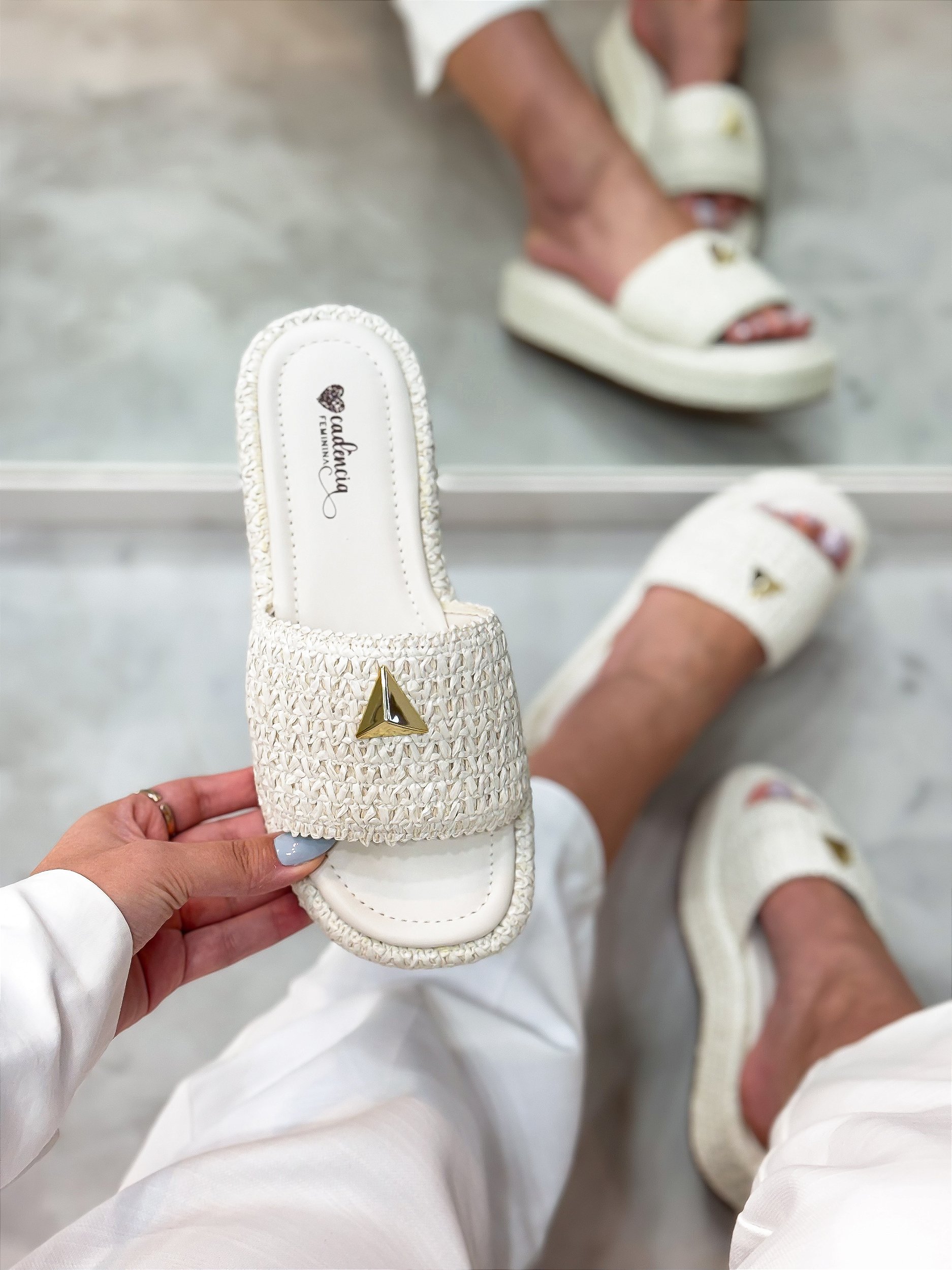 A nossa flat confere um toque estiloso e chic. Ela é toda anatômica e com o solado macio e muito confortável, toda em material ráfia, que traz leveza e elegância ao sapato.