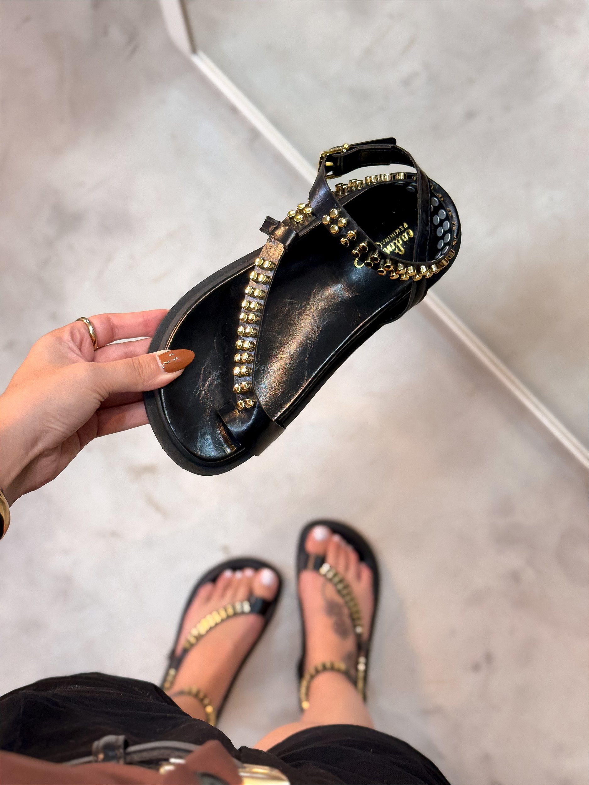 Tendência da estação, nossa Papete é cheia de personalidade! Modelo super chic com detalhe em aplicações douradas que está super em alta, além da versatilidade do modelo, ela é super confortável! Aposte nesse modelo que vai transformar seu look, além de proporcionar conforto.