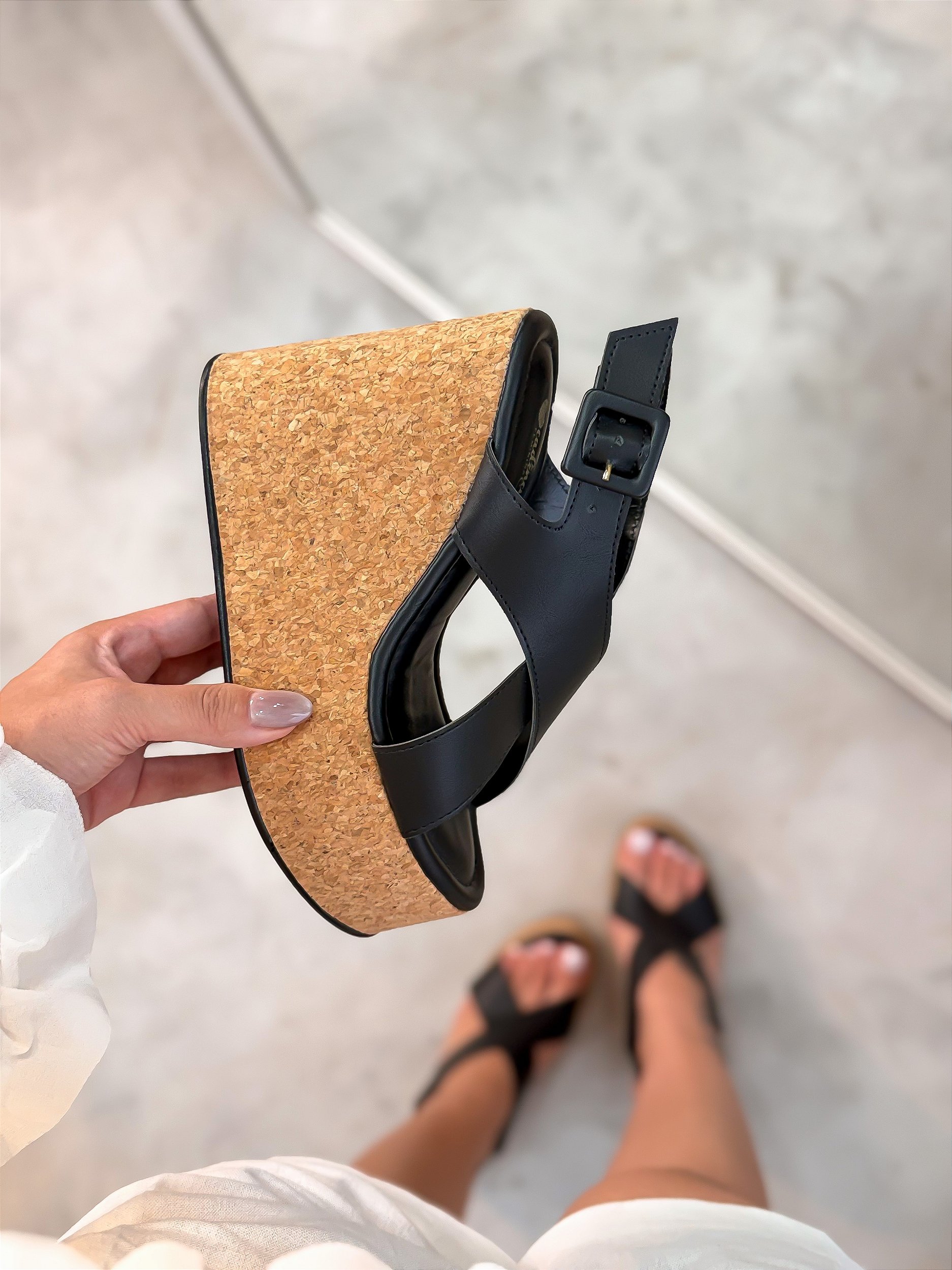 Confeccionada com solado em cortiça natural, a Martina oferece leveza, estabilidade e um visual sofisticado que eleva qualquer look.