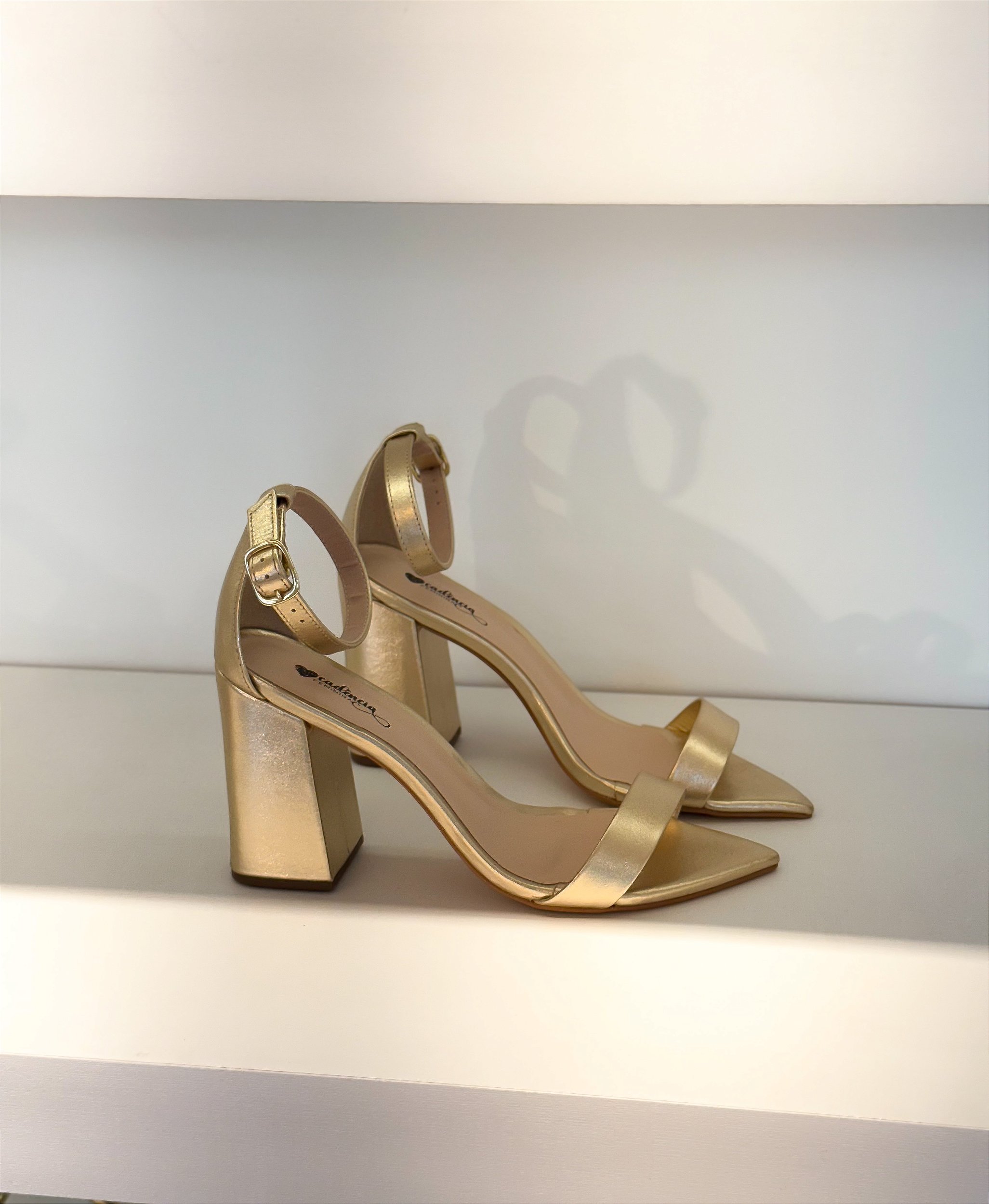 Sandália Feminina Anita Dourada em Couro Salto alto